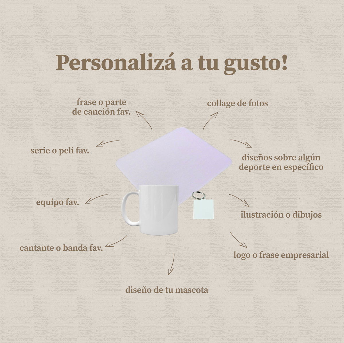 🎁 Combo Personalizado: Taza + Pad Mouse + Llavero