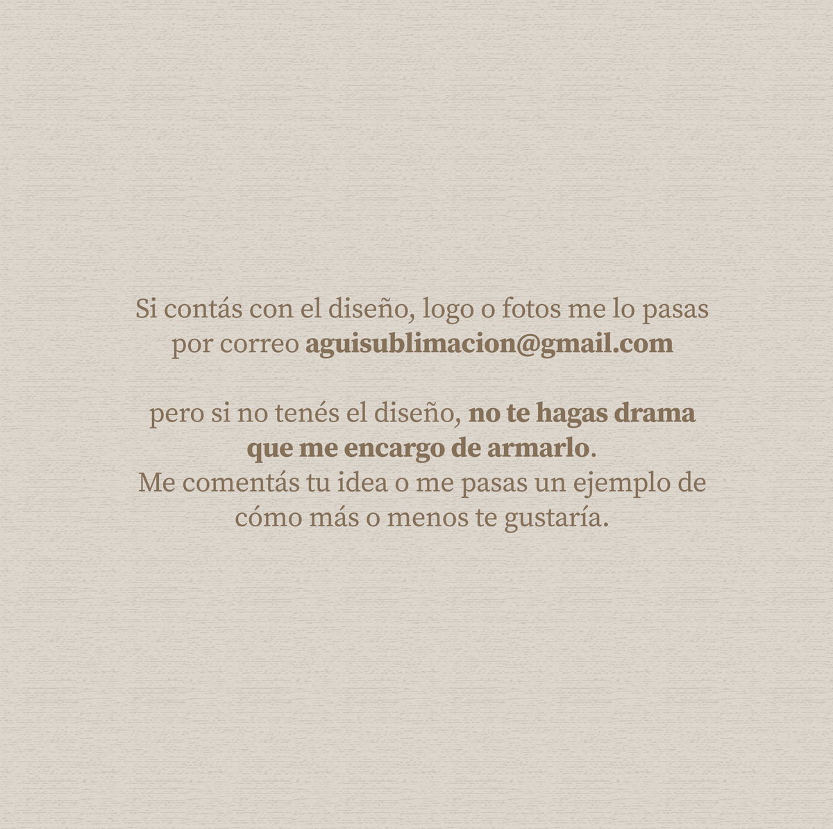 2. Me contás qué diseño querés o nos mandás tu imagen/frase.