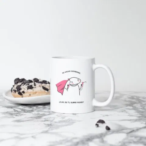 Taza de cerámica "yo salvo sonrisas, cuál es tu súper poder?"