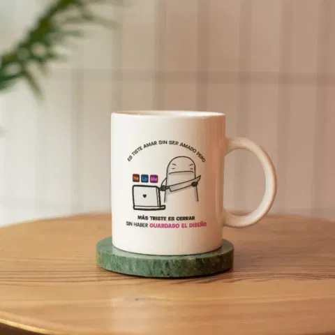 Taza de cerámica "triste es cerrar sin haber guardado el diseño"