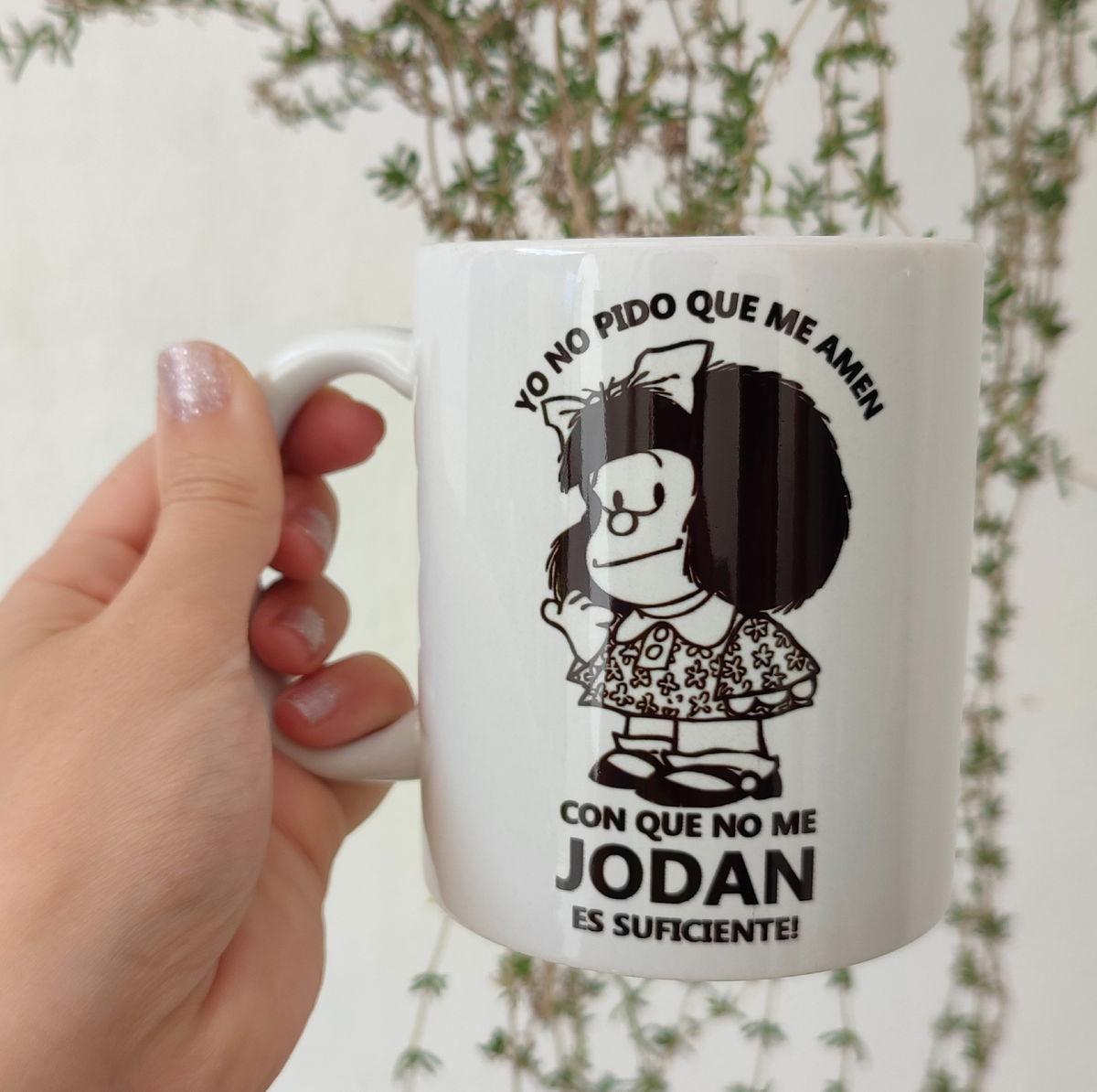 💬 Ideal para quienes aman el humor inteligente, el sarcasmo ligero y las verdades simples pero contundentes. Con el diseño ya sublimado inspirado en Mafalda y su frase “Yo no pido que me amen, con que no me jodan es suficiente”, esta taza combina ternura, ironía y filosofía cotidiana. Perfecta para usar en casa, en el trabajo o regalar a alguien con el mismo nivel de actitud.