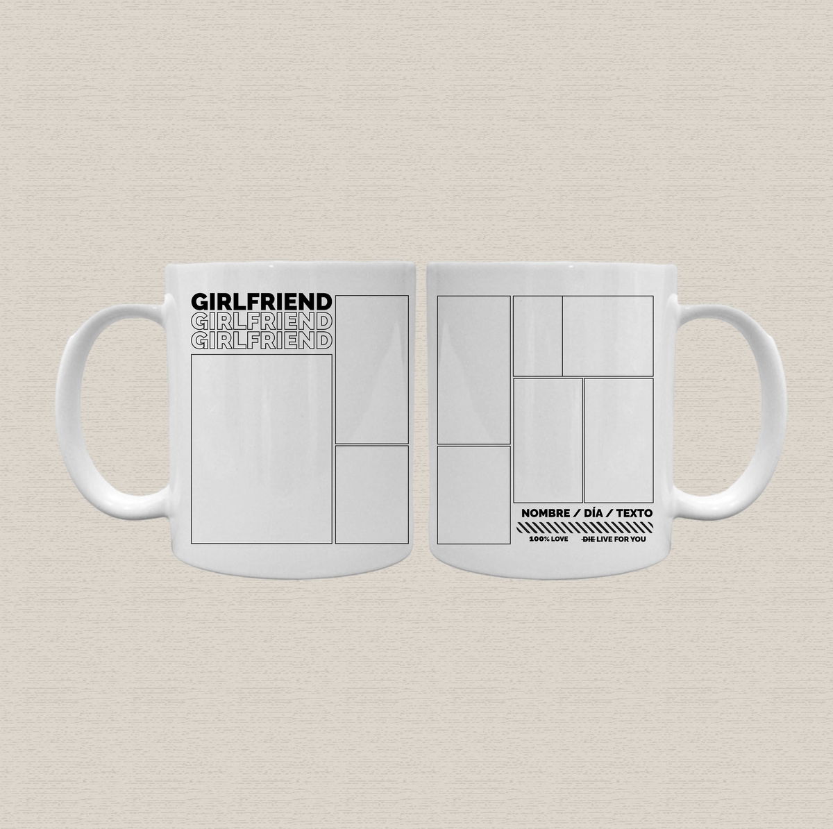 Taza de cerámica sublimada personalizada con diseño "girlfriend+collage"