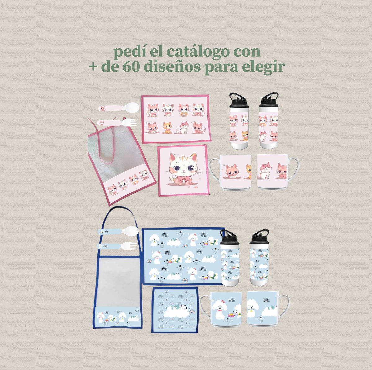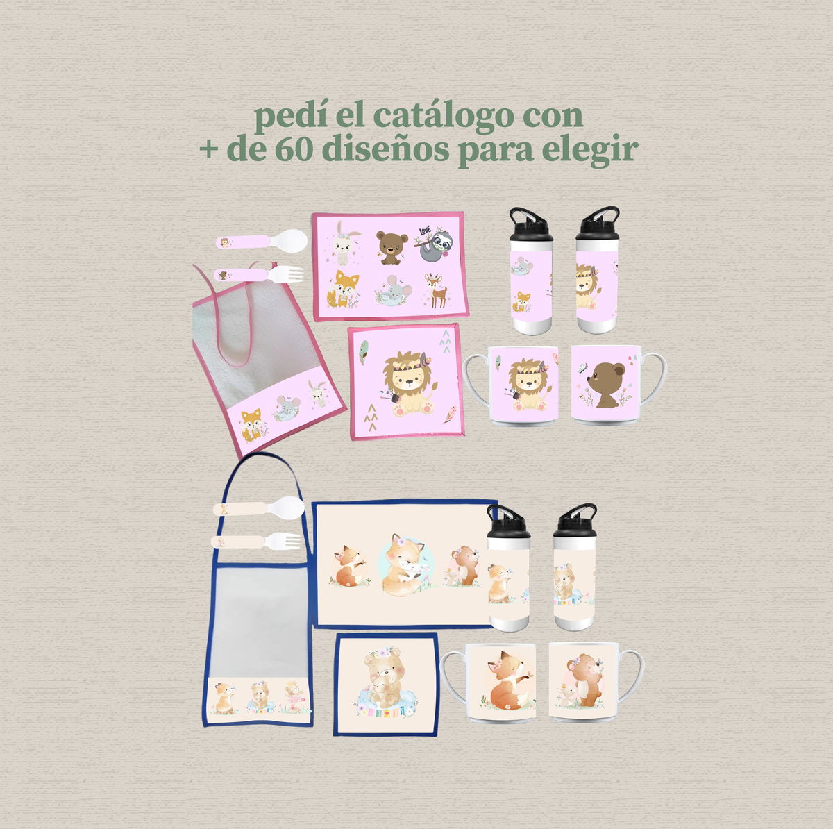 ✨ Este set de jardín infantil es ideal para que los niños disfruten su merienda, desayuno o picnic con un diseño hecho especialmente para ellos. Podés personalizarlo con su nombre, personajes favoritos, animalitos, colores o lo que imaginen. Perfecto para regalar y hacer de cada momento algo único. Pedí el catálogo con los diseños y te lo mando por whatsapp.