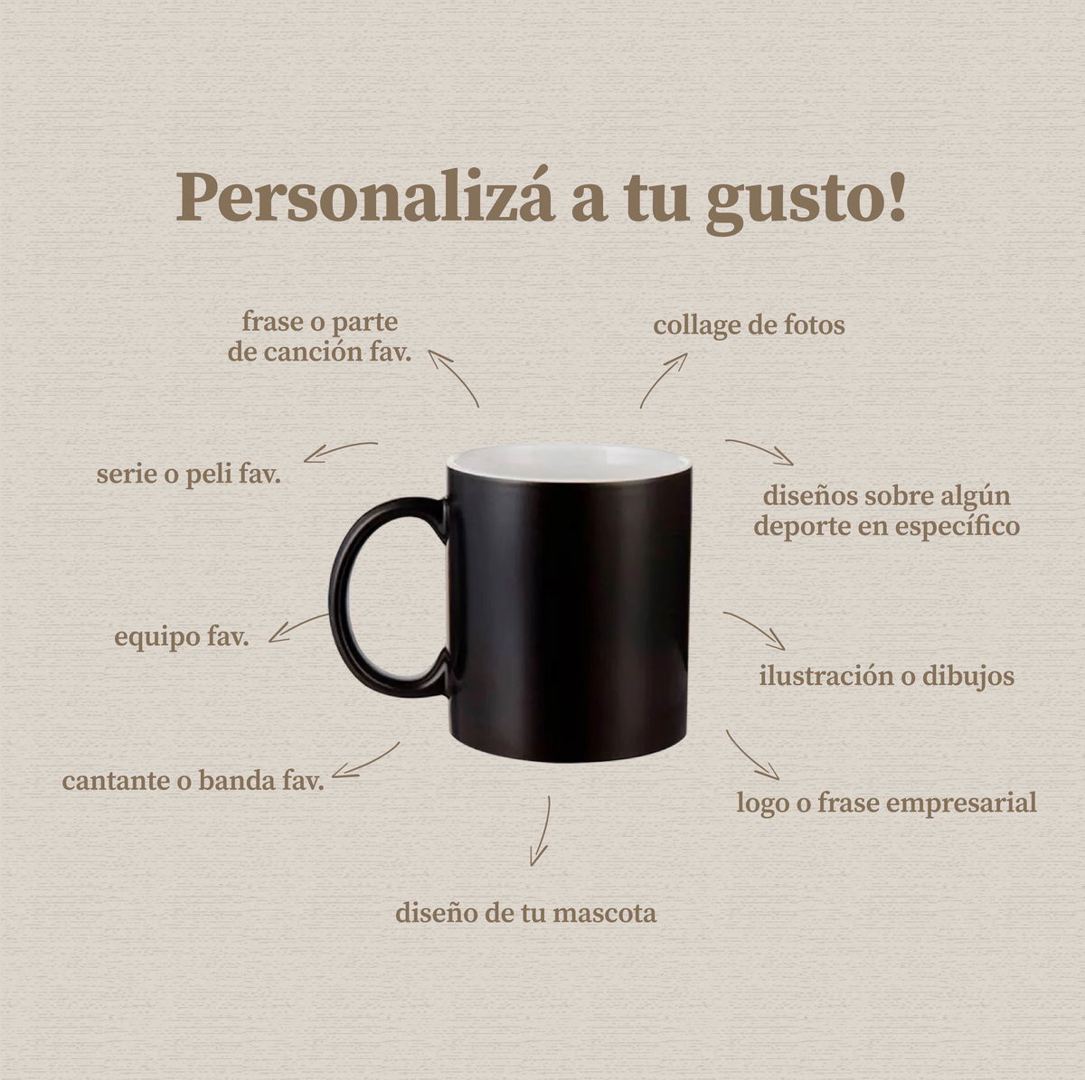 Porque no son solo tazas. Son recuerdos, emociones, pasiones y momentos. Cada diseño es único, hecho con dedicación, y pensado para que lo disfrutes todos los días.